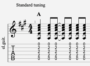 A is played from the 5th string down like so: