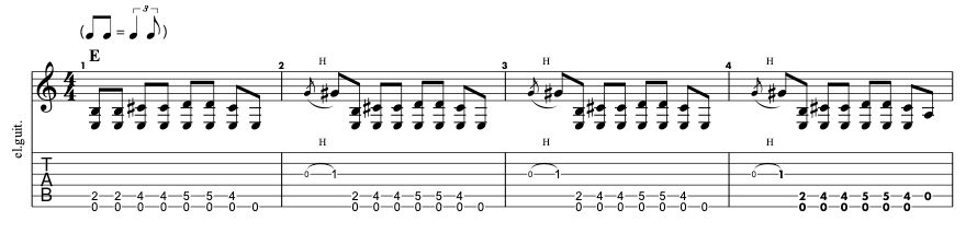 Vaughan elaborates on this progression by combining a blues shuffle pattern and also some bluesy chord embellishments.