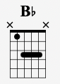 Finally, we have C which simply takes the Bb shape and moves it up 2 frets like this: