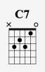 C7 is a great-sounding bluesy-style chord. This one takes a standard open C chord, but adds the pinky down on the 3rd fret of the 3rd string like this: