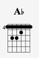 Ab is a similar shape, but this one shifts to the 4th position and uses all 6 strings like this: