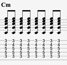 It’s a minor subdominant, giving a mellow and introspective sound. It often leads to G7 or back to Cm, creating a gentle tension and release cycle.