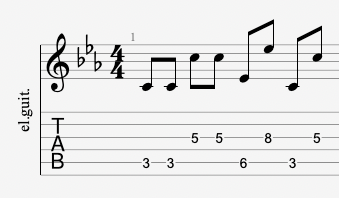 This gives a strong and consistent forward motion to the tune. Here’s an example of a riff demonstrating this rhythm: