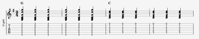 Function: This is the IV chord in the key. The IV moves the harmony away from the tonic without creating tension. It has a beautiful open sound that often leads either back to G or forward to D. It’s the classic subdominant of the key and one of the essential chords in folk, pop, and rock chord progressions.
