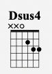 Dsus4 makes just a slight change from the D chord and adds the pinky finger on the 1st string like this: