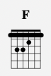 F is a bar chord played in 1st position and uses all 6 strings like this: