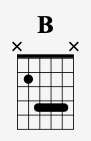 Finally, we have B, which is played as a bar chord in 2nd position like this: