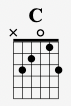 C is played from the 5th string down with an added pinkie on the 1st string 3rd fret like this: