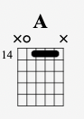 May also plays this chord up 12 frets. He takes the same shape and moves it higher up the neck like this: