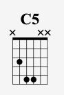 The feedback builds up and then C5 comes in as the first chord. I play this chord as a power chord in 3rd position like this: