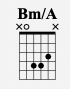 Bm/A keeps the 5th string open but shifts the middle part of the chord up like so: