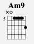 Finally, we have Am9. This chord is the final chord in the song and sounds beautiful.