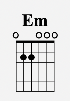 Finally, we have Em, a beautiful open-sounding chord. It uses all 6 strings like this: