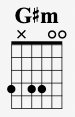 G#m is a blend of fretting notes, open strings, and muted strings like this: