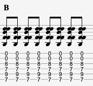 Notes: B – D♯ – F♯ – E